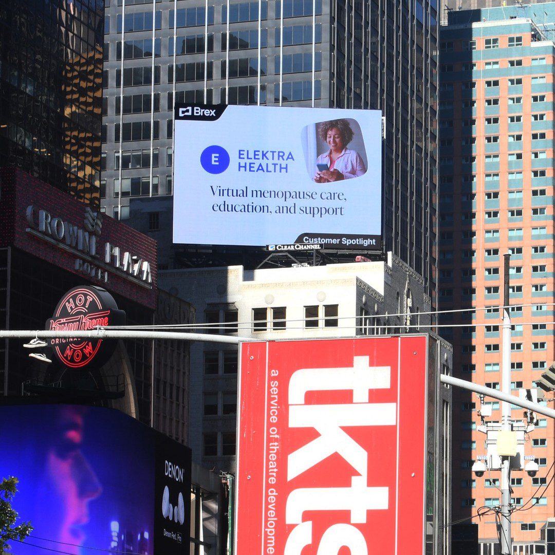 We went from zero to over 20 in-network health plan contracts. We got close to the local community with energizing in-person events, brought the Elektra team together to strategize and bond, petitioned for wider menopause care access, saw menopause doulas make news in a big way, and even got the Elektra logo in the bright lights of Times Square!