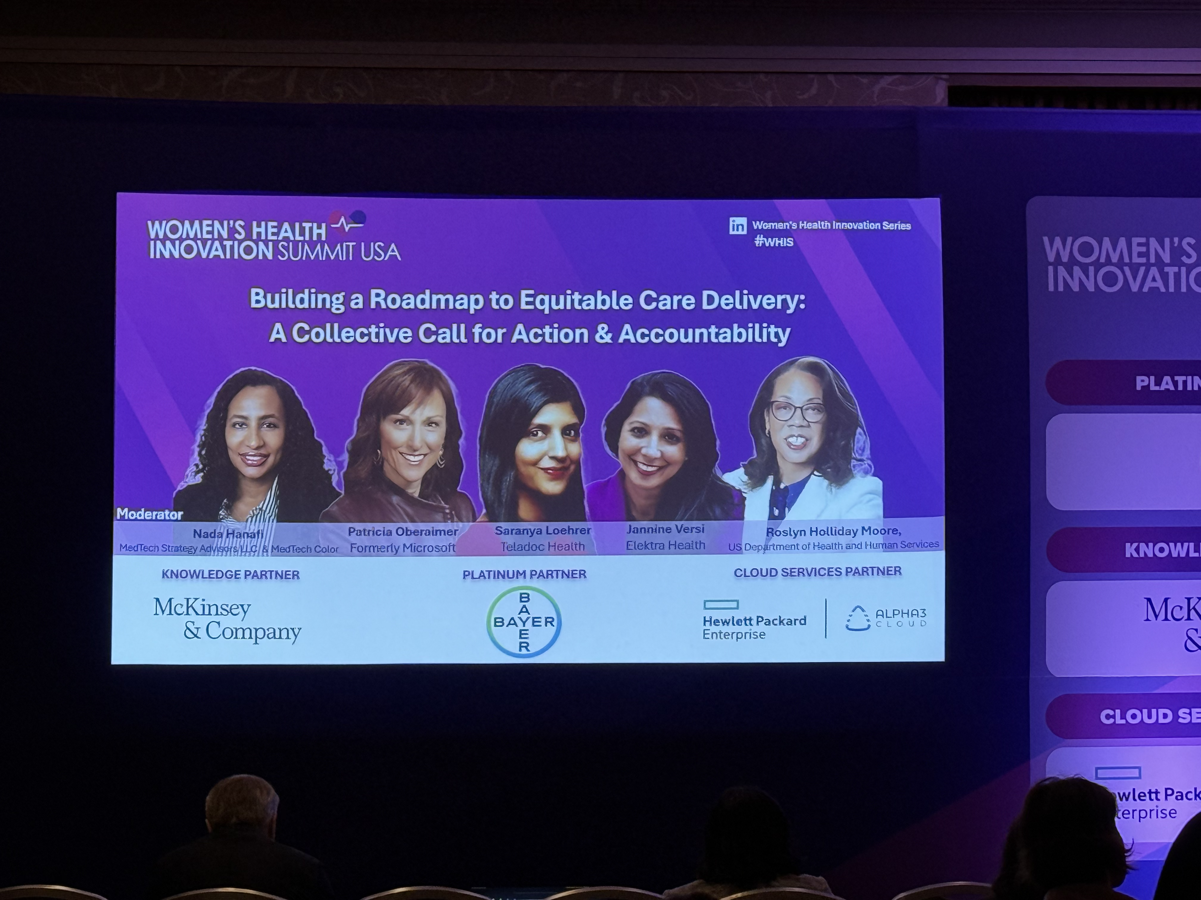 At Jannine’s fifth year attending WHIS, she spoke on a panel covering equitable care delivery alongside Nada (Osman) Hanafi (Founder of MedTech Strategy Advisors), Saranya Loehrer, MD, MPH (Chief Patient Experience and Health Equity Officer at Teladoc Health), Roslyn Holliday Moore (Senior Public Health Analyst at the Office of Behavioral Equity at the US Department of Health and Human Services), and Patricia Obermaier (former Chief Growth Officer of Global Health and Life Sciences at Microsoft).
